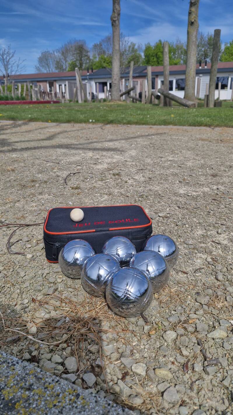 En er is een jeu-de-boules-baan. Hartstikke leuk natuurlijk, maar dan moet je wel ballen hebben. Die heb ik nu gekocht, bij campingshop Clarijs in het dorp. Niet van die gekleurde plastic dingen voor op het strand (ook leuk natuurlijk), maar echte, zilverkleurige pétanqueballen waarmee je ook in Frankrijk goede sier zou kunnen maken.